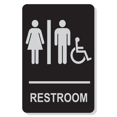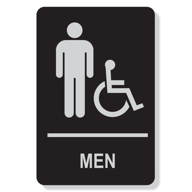 6x9 Mens accessible washroom sign Non glare finish Black with silver tactile text Tactile text and pictogram with Grade 1 Braille Made to Canadian...