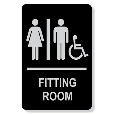6" x 9" Fitting Room Sign Black non glare finish with Silver tactile text Tactile text and pictogram with Grade 1 Braille option Made to Canadian ...