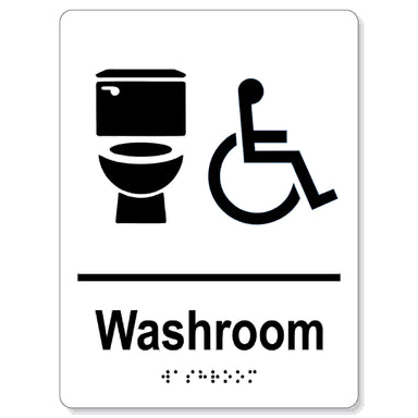 Washroom sign without ISA symbolGrade 1 Braille with clear dots.8mm Tactile text and PictogramNon- glare acrylic surface available in 3 colours