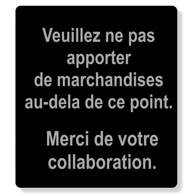 8" x 9" Thank you for not bringing merchandise beyond this point - sign Black non glare finish with Silver tactile text Double sided mounting ta...