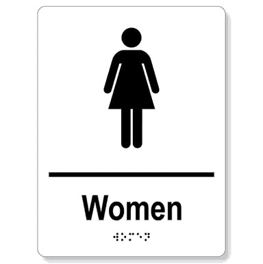 Women washroom sign without ISA symbolGrade 1 Braille with clear dots.8mm Tactile text and PictogramNon- glare acrylic surface available in 3 colours