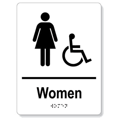 Women accessible washroom sign with ISA symbolGrade 1 Braille with clear dots.8mm Tactile text and PictogramNon- glare acrylic surface available in...