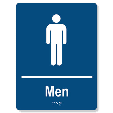 Men washroom sign without ISA symbolGrade 1 Braille with clear dots.8mm Tactile text and PictogramNon- glare acrylic surface available in 3 colours