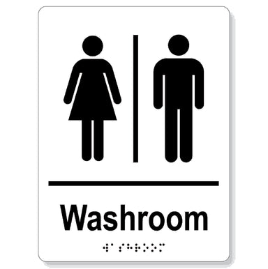 All gender washroom sign without ISA symbolGrade 1 Braille with clear dots.8mm Tactile text and PictogramNon- glare acrylic surface available in 3 ...