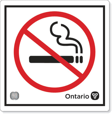 Laminated vinyl decal suitable for outdoor use.Smoke Free Ontario act,2017 - reg. 268/18Required to be posted at each entrance, exit and washroomto...