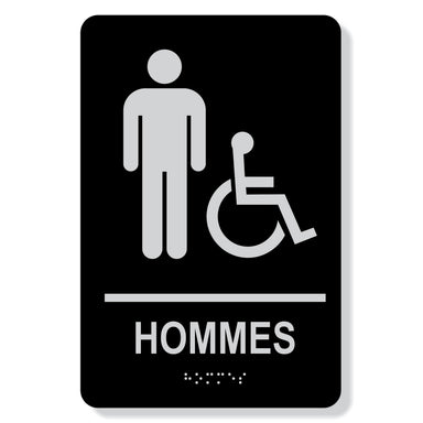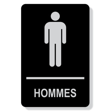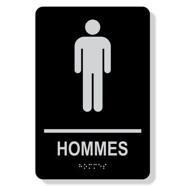 6" x 9" HOMMES sign Black non glare finish with Silver tactile text Tactile text and pictogram with Grade 1 Braille option Made to Canadian standa...