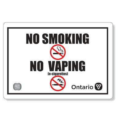Laminated vinyl decal suitable for outdoor use.Smoke Free Ontario act,2017 - reg. 268/18Required to be posted at each entrance, exit and washroomto...